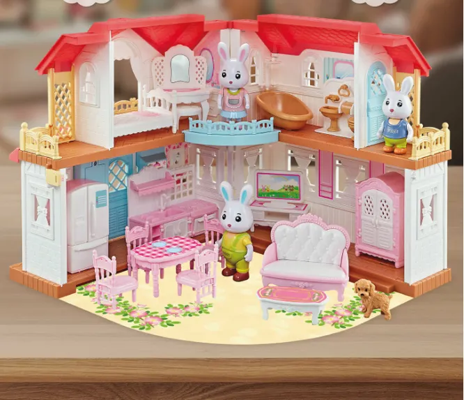 О кукольном домике мечтает каждая девочка, ведь там все почти как настоящее. В нем можно расставить мебель, разложить крохотные аксессуары и бесконечно играть с куклами или фигурками. Подарив 3-летнему ребенку домик, взрослые помогают ему осваивать различные навыки. К примеру, малыш учится соблюдать режим, ведь обитатели его жилища чистят зубы, завтракают, убирают в шкаф одежду и расставляют посуду на столе. Игра с домиком и его жильцами прекрасно развивает воображение: каждый день девочка придумает для своих подопечных новый сюжет. Так, к зайцам могут прийти в гости другие игрушки, нажав на кнопочку рядом с дверью, и тогда на крыльце загорятся уютные фонари. В сложенном виде конструкция не занимает много места, зато презент принесет радость на многие месяцы.