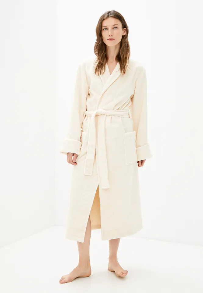 После душа она сможет укутаться в этот уютный халат. Свободный крой, мягкий материал, красивый нейтральный цвет — этот халат просто необходим тем, кто заботится о своем комфорте.