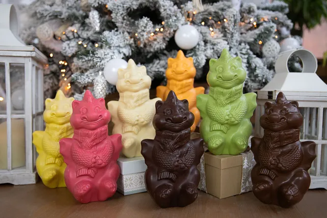 Озорной символ Нового года из традиционного или цветного шоколада точно заставит ее улыбнуться. Искусно сделанные фигурные сладости настраивают на праздничный лад не только детей, но и взрослых.