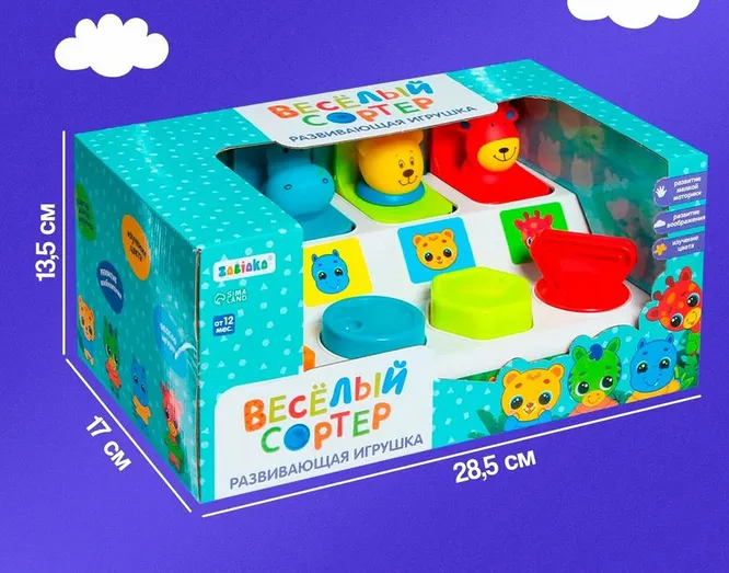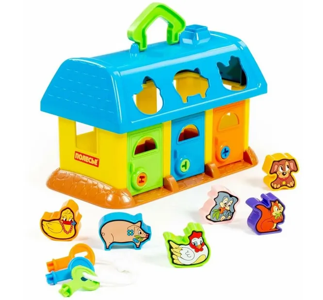 При выборе игрушек для годовалых малышей особое внимание нужно уделять их безопасности. Этот красочный сортер соответствует самым строгим требованиям: он прочный, не содержит мелких деталей, нетоксичен. Игрушка развивает фантазию, логическое мышление и моторику; учит различать цвета и формы; помогает запомнить, как выглядят домашние животные и даже научиться пользоваться ключами.