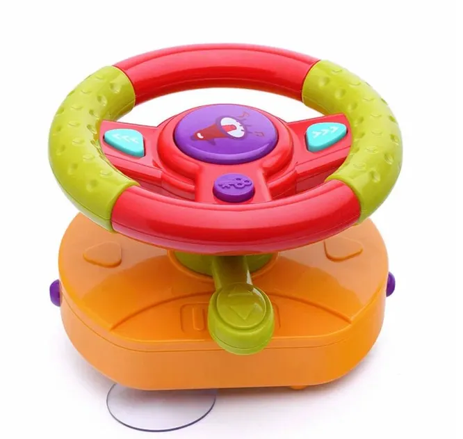 Музыкальный руль поможет ребенку почувствовать себя настоящим гонщиком во время поездки в прогулочной коляске. При желании игрушка подойдет и для использования дома. Выполненный из безопасного прочного пластика руль окрашен в яркие цвета и легко вращается в детских руках. Имитация звуков зажигания, поворотника и клаксона добавит игре реалистичности. Игрушка крепится с помощью присосок или липучек и работает от батареек.