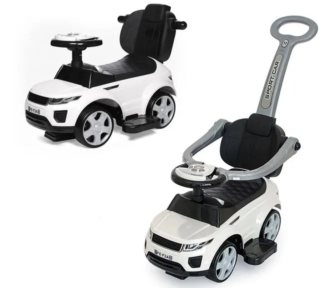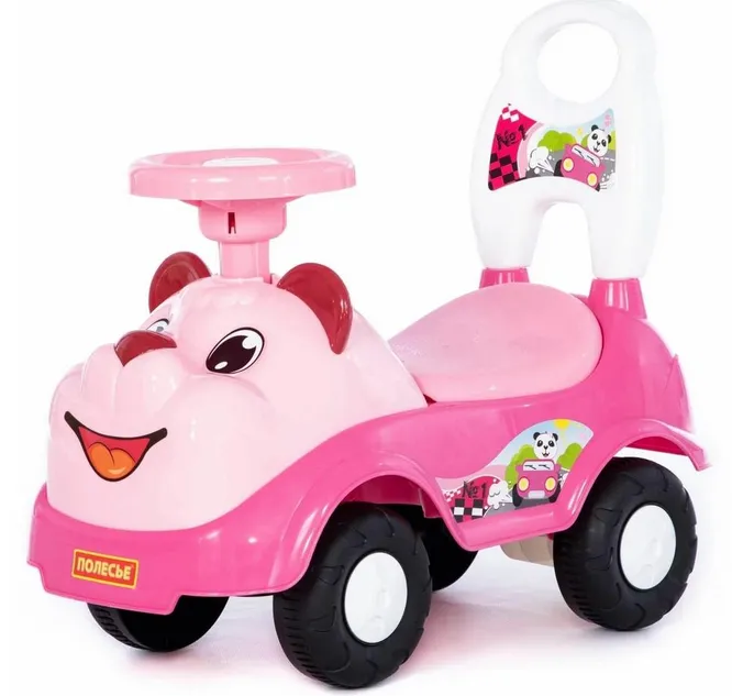 Машинка-пушкар – отличная альтернатива прогулочной коляске. Благодаря продуманной конструкции даже самые маленькие (игрушка предназначена для детей от 10 месяцев) не выпадут из каталки. Использовать ее можно, пока вес ребенка меньше 27 кг, и мы уверены, что машинка станет любимой игрушкой для малышей как дома, так и на улице. Поворотный руль со звуковыми эффектами позволяет ребенку ощутить себя за рулем настоящего автомобиля. Родительская ручка, бампер безопасности и подножки снимаются, благодаря чему игрушка может использоваться и самостоятельно.