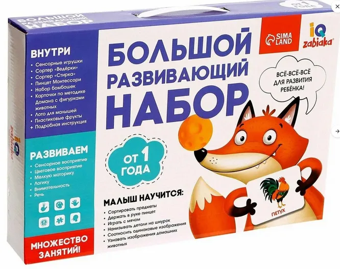 В этот развивающий набор для детей старше 1 года входит семь разных игр: