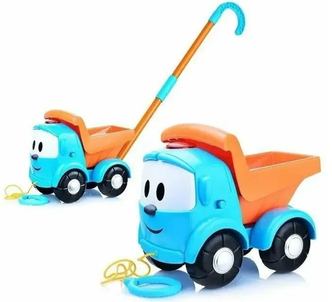 Грузовичок по имени Лёва подарит ребенку много радости. Его можно использовать не только для транспортировки песка или игрушек, но и в качестве каталки на палке (как любят дети помладше) или на веревочке (нравится тем, кто уже подрос). Кроме того, грузовичок издает 15 видов звуков, из них 6 песен из мультфильмов, и радует глаз световыми эффектами. В общем, ребенок с таким подарком точно не соскучится.