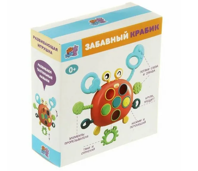 Игрушки для малышей хороши тем, что могут использоваться в течение длительного времени. Например, эта подвеска сначала будет радовать малыша, лежащего в кроватке, позднее может использоваться как погремушка, а потом и как тянучка и тренажер для развития осязания. Ее не только можно, но и нужно пробовать на вкус: изготовленные из безопасного материала детали предназначены для использования в качестве прорезывателя. Рельефные поверхности развивают тактильные навыки, приятные оттенки способствуют развитию зрения.