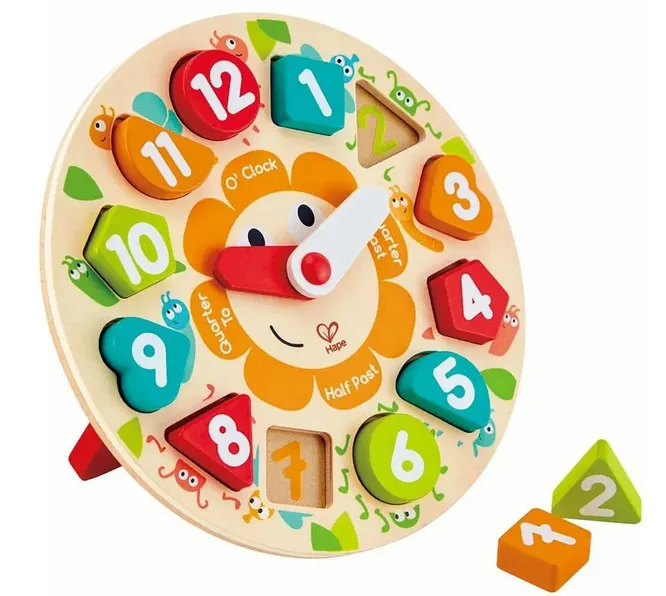 Развивающая деревянная игрушка учит определять время по часам и не только: с ее помощью ребенок знакомится с цифрами, научается различать формы и цвета, развивает логическое мышление и мелкую моторику. Приятный дизайн с изображениями симпатичных насекомых радует глаз. Поначалу малыш может использовать игрушку как обычный сортер, исподволь запоминая последовательность цифр, а в дальнейшем головоломка будет использоваться для обучения определять время по часам со стрелками.