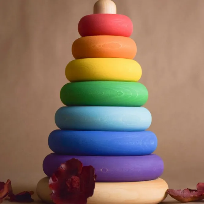 Кое-что в нашем быстро меняющемся мире остается неизменным – например, детские пирамидки, которые современные малыши любят так же нежно, как и их сверстники сотню лет назад. Нам понравился этот вариант, выполненный из натурального дерева и окрашенный с помощью безопасных красителей. Игрушка помогает развивать логическое мышление; прививает представления о цветах, формах и размерах; стимулирует творческую активность и совершенствует координацию. Поначалу ребенку будет непросто надеть колечки на пирамидку хоть как-то, позднее он научится собирать пирамидку по правилам, а затем получит бесценный опыт нарушения этих правил в пользу творческих открытий.