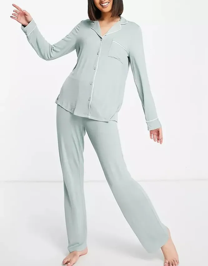 Минималистичная пастельная пижама из мягкой вискозы обеспечит комфортный сон и станет отличным вариантом домашней одежды.