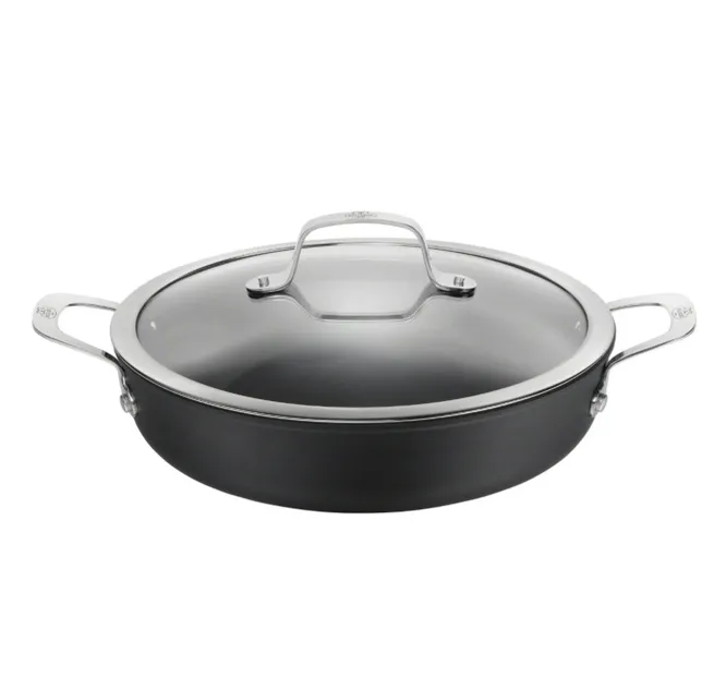 Эта сковорода понравится как новичкам, так и опытным домашним поварам. Есть антипригарное покрытие и удобные ручки. Подойдет для приготовления яичницы, варки макарон, тушения мяса и овощей и много другого.