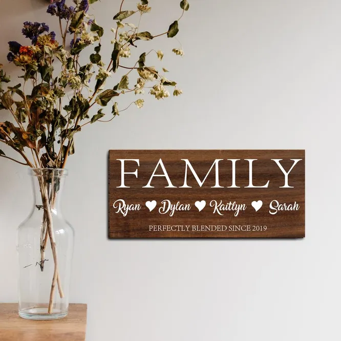 Деревянная табличка с именами всех членов семьи всегда будет ей напоминать о ее любимых людях, даже если вы живете в разных уголках мира.