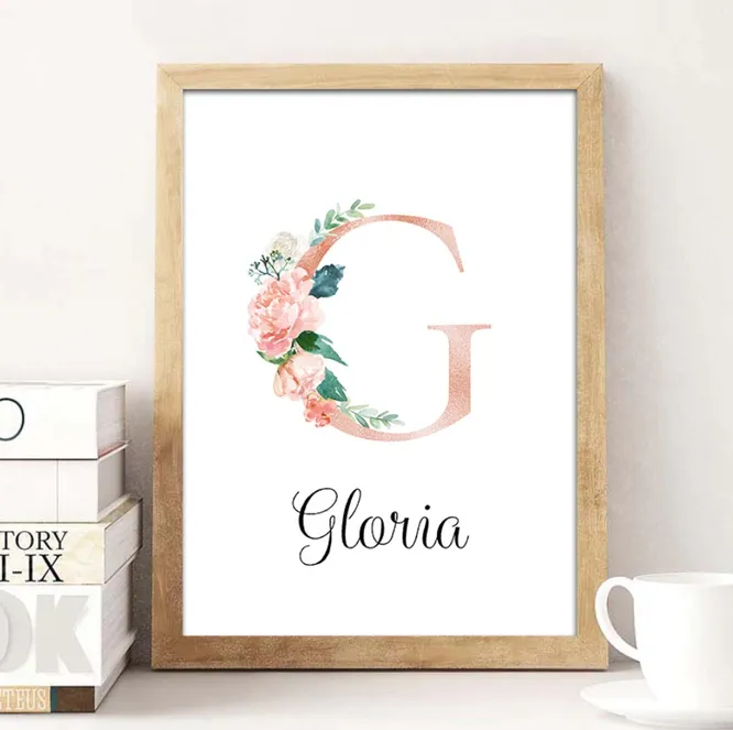 Милый постер с первой буквой ее имени в обрамлении акварельных цветов украсит ее рабочее место или спальню. Внизу можно написать дату ее рождения.