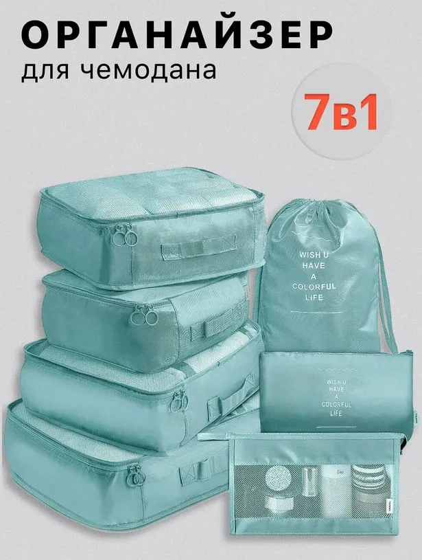 Разбирать чемодан – сомнительное удовольствие, но можно сделать это занятие куда более приятным, если использовать специальные органайзеры. В набор входит 7 сумок из прочного и легкого материала – для крупных предметов одежды, для нижнего белья, для обуви, мелочей, документов, косметики... Сетчатая поверхность позволяет легко увидеть содержимое органайзеров и быстрой найти нужную вещь. Дорожный набор можно использовать для хранения одежды, белья, обуви и любых других предметов не только в пути, но и дома. Нам понравился набор в голубых тонах, но в ассортименте представлены и другие оттенки.