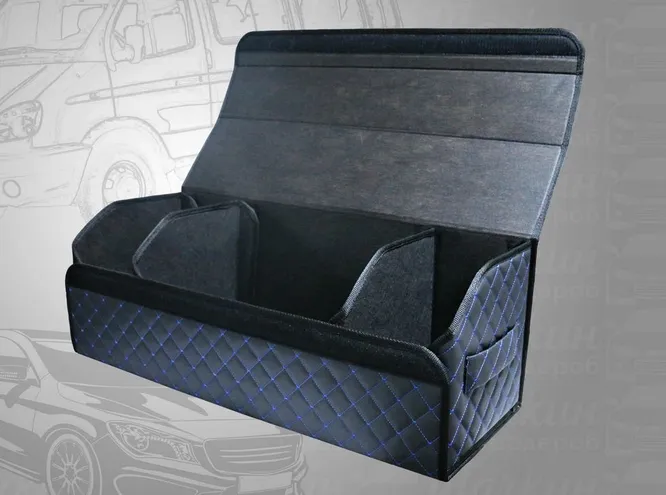 Органайзер для автомобиля – подарок, который пригодится любому автомобилисту, вне зависимости от того, привык он путешествовать на тысячи километров, или ездит только по маршруту дом-работа. Вместительный короб изготовлен из прочной экокожи, которой не страшны повреждения. Внутри предусмотрено три больших отделения и кармашки для мелочей. Органайзер легко собирается и крепится к багажнику с помощью «липучек».