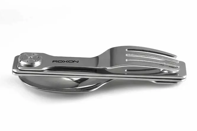 Туристический набор столовых приборов (вилка+ложка) – идеальное решение для походов и отдыха на природе. Вес набора составляет всего 88 г, вилка и ложка надежно крепятся друг к другу с помощью магнитного крепления, и можно не бояться, что их придется искать по всему рюкзаку. В комплекте также идет фирменный мешочек для хранения столовых приборов.