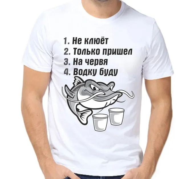 Любители рыбной ловли – люди обычно довольно суеверные. У каждого из них есть свои приметы, обеспечивающие хороший клев и прочие радости рыбалки. Футболка, обещающая успех в этом непростом деле, станет отличным подарком и талисманом для любого рыбака. Свободный крой не сковывает движения, а смесовый материал сочетает воздухопроницаемость хлопка и прочность полиэстера. Футболка предлагается в черном и белом цветах, широкий размерный ряд позволяет одаривать рыбаков любой комплекции.