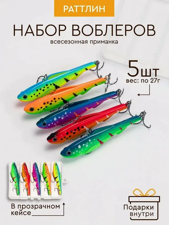 Воблер – это объемная приманка в виде рыбки, привлекающая хищников. В этом наборе собрано 5 реалистично окрашенных приманок, каждая из которых оснащена острым тройным крючком. В воде такие рыбки шевелятся как настоящие, и их колебания возбуждают аппетит у амура, жереха, кефали, форели, щуки и других хищников. К набору прилагается подарок.