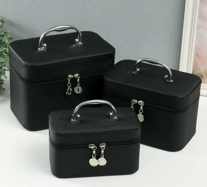 Свой сундучок с сокровищами есть практически у каждой женщины, но он, как и гардероб, прическа и настроение, нуждается в обновлении. Современный дизайн, классический черный цвет и большая вместительность делают подарок универсальным для дам всех возрастов. К тому же в одном из них можно хранить косметику, в другом – украшения, третий брать в командировки и путешествия. По какому принципу ни строилась сортировка, с таким презентом в сокровищах женщины будет полный порядок.