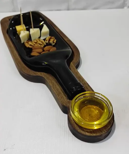 При сборе семьи за столом или встрече гостей сервировка играет далеко не последнюю роль. Ее отсутствие не повлияет на вкус блюд, но украшение стола поможет создать душевную и уютную атмосферу. Для подарка маме, бабушке, сестре или подруге можно выбрать набор, в который входит тарелка из стеклянной винной бутылки, поднос, соусник, шпажки и необычная рюмка. Комплект станет изюминкой любого стола и придаст особый шик кухне, а подача блюд на такой тарелке будет выглядеть очень эффектно и эстетично. А еще с ним удобно расположиться вдвоем – с легкими закусками за просмотром фильма.