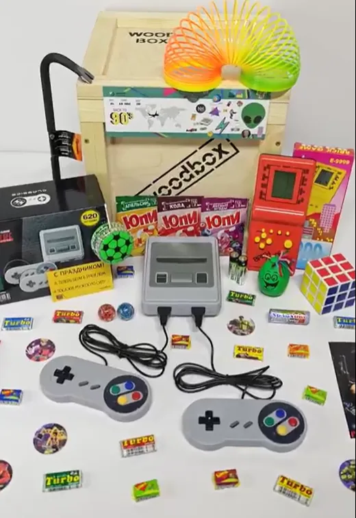 Трудно не растеряться, если у парня все есть, а бюджет подарка ограничен суммой в 5000 рублей. В таких случаях сработает идея оригинального презента, который и настроение поднимет, и даже вызовет скупые слезы умиления. Бокс «Назад в 90-е» может понравиться мужчинам за 35, у которых когда-то (или у их друзей) были все эти сокровища. В деревянном ящике сложены многие атрибуты юности: приставка dendy, радужная пружинка, тетрис, сладкие часы, попрыгунчики и растворимый лимонад. Оказывается, с помощью небольшого подарка можно оживить целую эпоху и воспоминания!