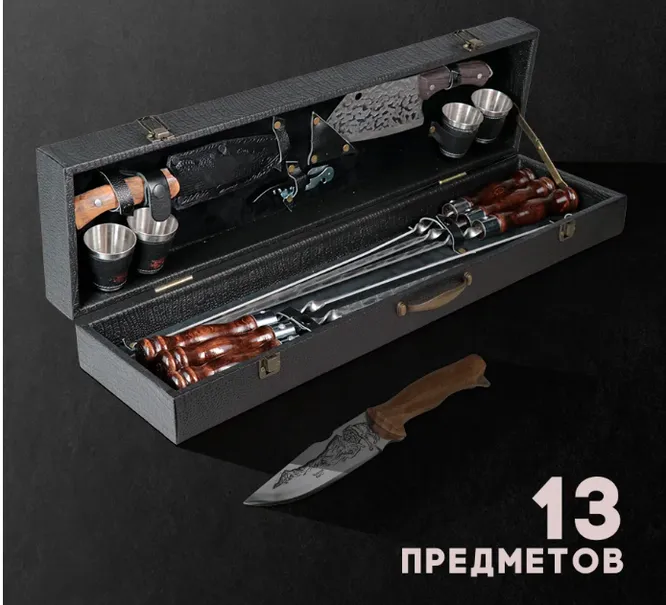 Ученые выяснили, что даже простое созерцание куска мяса снимает у мужчины стресс. А приготовление мяса на костре буквально вводит парней в состояние эйфории, погружая в мир несравнимых ароматов и ощущений. Судя по всему, любовь к этому блюду заложена в их ДНК, ведь еще для первобытного человека первой по-настоящему вкусной пищей стала приготовленная на огне добыча. Чтобы превратить процесс в праздник души и вкуса, предлагаем подарить мужу или папе набор для пикника, который удобно брать с собой на природу, дачу или рыбалку. Таким точно не стыдно похвастаться перед гостями!