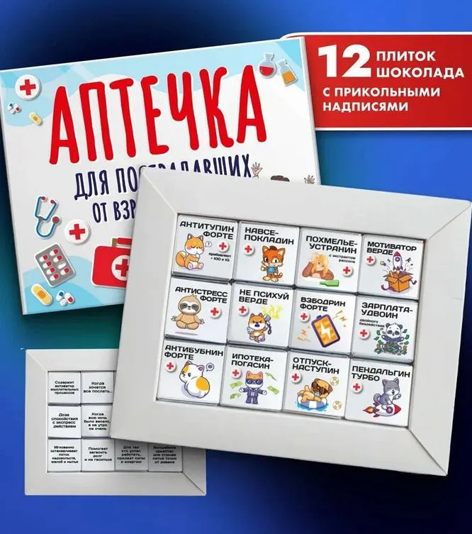 Мужчины тоже любят шоколад, просто реже полачают его в дар. Предлагаем в качестве подарка мужчине 30 лет шоколадную аптечку с вкусными лекарствами, которые помогут справиться с многочисленными проблемами взрослой жизни.