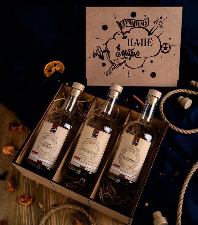Если твой отец знает толк в хорошем алкоголе, возможно, ему будет интересно самостоятельно поколдовать над вкусом крепкого напитка. В таком случае набор для приготовления настоек может оказаться весьма приятным недорогим подарком. Он включает в себя три смеси трав, пряностей и орехов для настаивания.
