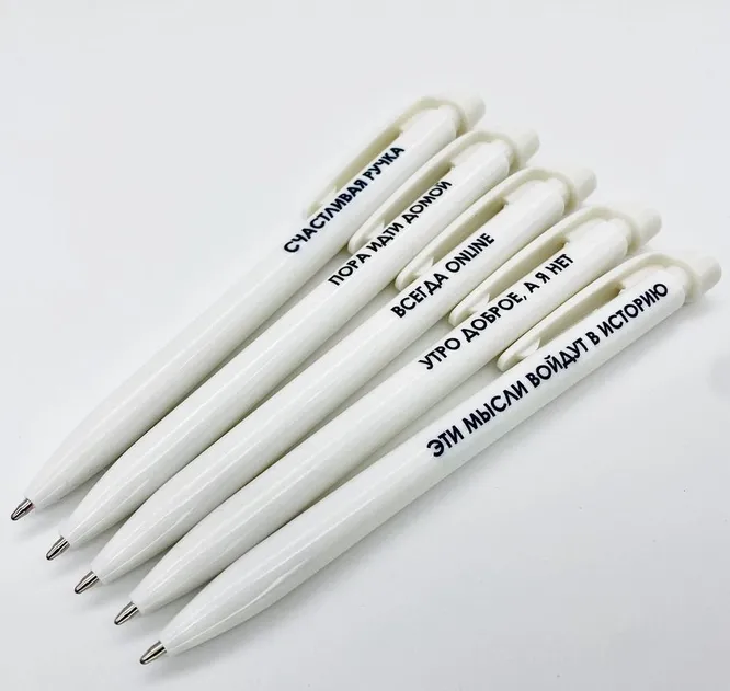 Шариковые ручки с надписями, повышающими настроение — прекрасный презент, полезный и приятный одновременно. То. что надо для небольшого бюджетного подарка!