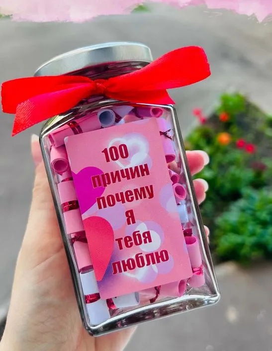 Для любимой девушки ничего не жалко, но если в данный момент в карманах пусто, это не повод оставлять ее без презента. Отличный вариант бюджетного подарка — баночка с трогательными признаниями в любви. Кстати, при желании можно изготовить такой подарок своими руками.