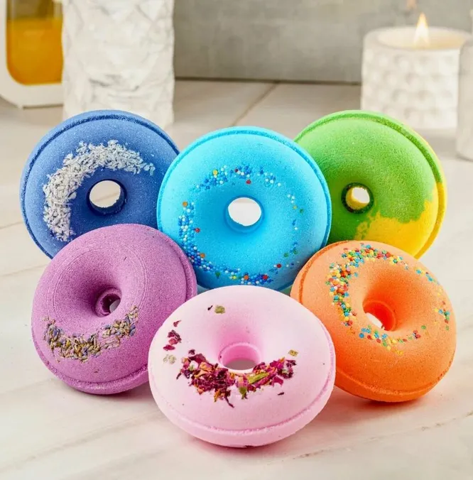 Разноцветные бомбочки для ванн в виде красочных пончиков имеют приятный аромат, бурлят, пенятся, не окрашивают ванну и доставляют максимум удовольствия — в общем, идеально справляются со своими задачами. Такому недорогому подарку будут рады все девочки от 3 и до, наверное, 90 лет, даже те, кто не очень-то любит принимать ванну.