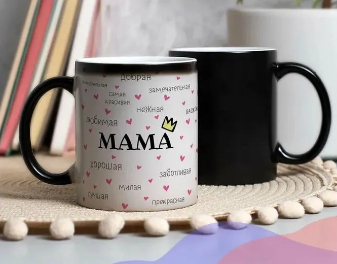 Кружка-хамелеон – подарок недорогой, но запоминающийся. Каждый раз, наливая в такую кружку горячую жидкость, можно наблюдать за тем, как проявляются изображения на ее стенках. На заметку: получить в дар такую посуду будет приятно не только маме, аналогичные разновидности есть для папы, бабушки и других родственников.