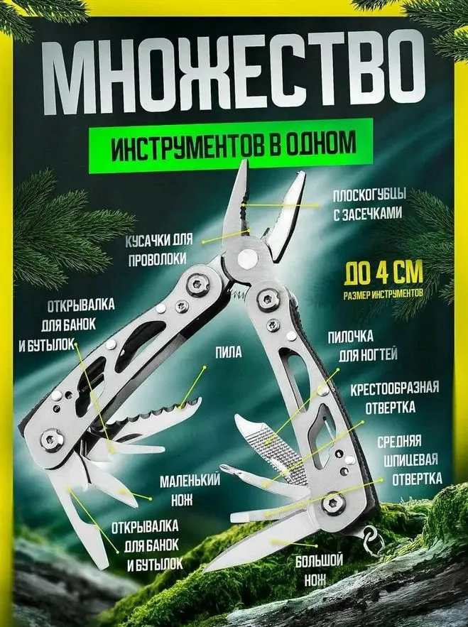 Мультитул — компактный и универсальный инструмент, выполняющий самые разные функции. Он пригодится и дома, и в дороге, и на даче, и на природе — одним словом, везде. Это хороший подарок всего на 500 рублей и даже меньше.