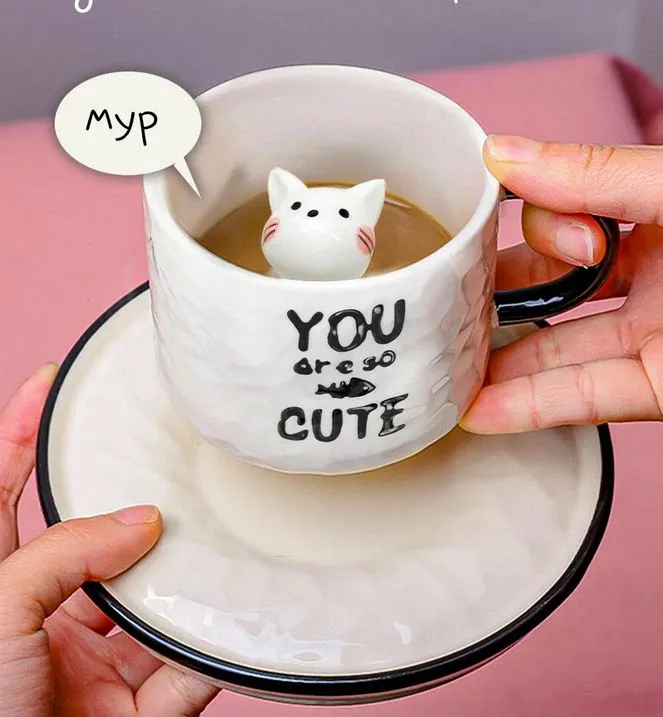 Честно говоря, такие чашки не очень удобны, если требуется размешивать сахар в напитке, но для тех, кто пьет чай или кофе без сахара лучшего бюджетного подарка не найти! Котик на дне чашки неизменно вызывает умиление и повышает настроение, а это именно то, что нам необходимо с утра пораньше.