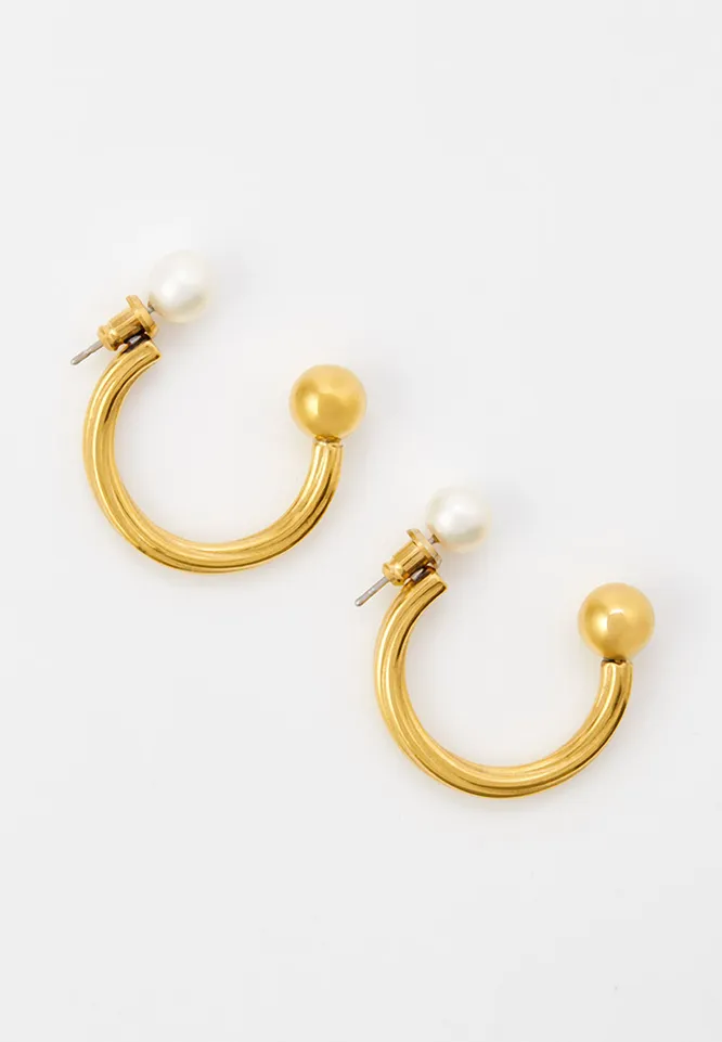 Универсальные серьги с позолотой 18 карат, украшенные изящными жемчужинами, — трендовый аксессуар, который гармонично впишется в ее повседневные луки, будь то строгий брючный костюм или романтичное платье.