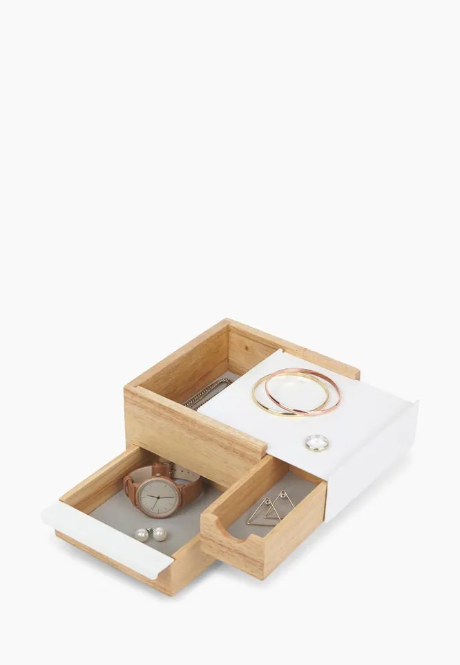 Стильная деревянная шкатулка с металлическими деталями не только вместит все ее украшения, но и будет органично смотреться на туалетном столике.