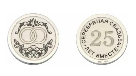 Не нужно быть особой царских кровей, чтобы заказать в качестве монету с гравировкой – с именами супругов или пожеланием. Также можно вручить паре в подарок на серебряную свадьбу готовое изделие. Аверс серебряной монеты украшен простым и изящным узором с соединенными кольцами, которые являются символом бесконечной любви и преданности. На реверсе изображена важная дата. Оригинальный презент не сломается и не испортится спустя много лет и, возможно, станет семейной реликвией. Альтернатива монете – серебряная подкова на счастье.