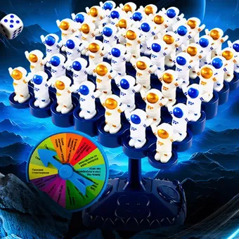 Что привлечет детей в детском саду в этом новогоднем подарке? В первую очередь интересные фигурки – в наборе аж 50 космонавтов. С ними можно не просто играть, передвигая по полу, а научиться сохранять баланс и развивать пространственное восприятие. Малышу понадобится помощь взрослых или старших братьев и сестер, чтобы играть по правилам. Для этого к фигуркам прилагаются сбалансированное дерево, кубик и штрафная рулетка. В игре отлично сочетаются развлекательная и образовательная ценность, а еще она подарит возможность всей семье весело провести время в новогодние праздники.