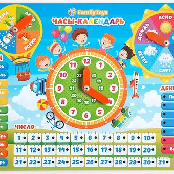Кристина: «Сделано всё очень аккуратно. Интересная и полезная игрушка для деток. Можно изучать и время, и дни недели, и погоду, и месяцы. Стрелки двигаются, ребенок каждый день переставляет фишки, называет дни недели, указывает предложенное число, потихоньку изучает явления природы. Для 4-летнего ребёнка все понятно, запоминает быстро».