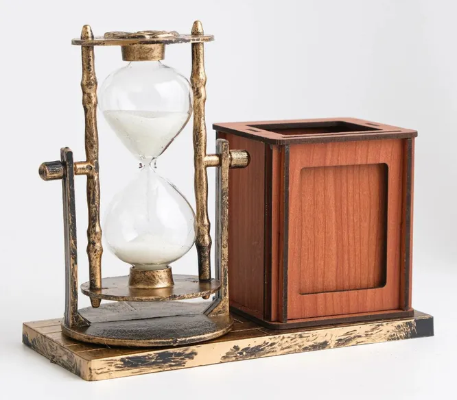 Сегодня мы можем любоваться на десятки тысяч моделей часов, от механических, кварцевых до смарт-устройств, но именно песочные обладают особым магнетизмом. Они считаются классическим инструментом измерения времени и привлекают своей идеальной формой. Если нужно подобрать недорогой подарок воспитателю на Новый год, нейтральный и без лишних изысков, подойдут декоративные часы с органайзером или фоторамкой. Стильный аксессуар преобразит любое пространство и станет украшением дома или рабочего стола. А заодно привлечет внимание воспитанников: смогут ли они убрать игрушки в группе, пока не упадет последняя песчинка?
