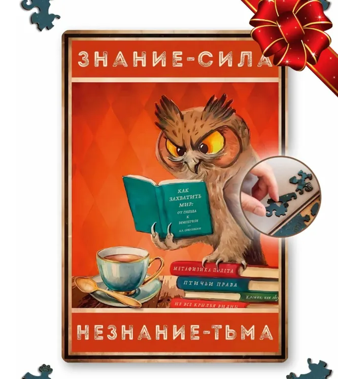 Пазлы давно стали трендом в мире игр и развлечений, причем не только детских, но и взрослых. Сборка деталей в единую картину помогает расслабиться, отвлечься от повседневных забот и сконцентрироваться на решении головоломки. Интерьерные деревянные пазлы послужат необычным подарком на Новый год воспитателю, обеспечив ему возможность создать уникальный декор для дома. Картина с забавной и при этом мудрой цитатой может встречать гостей в прихожей, главное, не забыть перед этим налюбоваться деталями – они фигурные, неповторяющиеся и интересные.