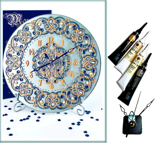 Карина: «Делала в первый раз в этой технике, но осталась очень довольна. Очень увлекает, не могла оторваться, так хотелось увидеть результат. Не скажу, что было легко, но приноровилась. Часы повесила на видное место, чтобы все гости любовались».