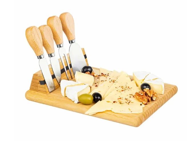 Вручать воспитателю в качестве подарка на Новый год посуду не слишком хорошая идея, но мы предлагаем присмотреться к интересному и стильному набору. Он станет фишкой праздничного стола и соберет комплименты всех домашних и гостей. Доска выполнена из бамбука, в комплекте с ней идут два ножа, лопатка и вилка. На ней можно красиво сервировать сыр, мясную нарезку, рыбу, шашлык, роллы, пирожные, конфеты, закуски и фрукты. Функционально и необычно!