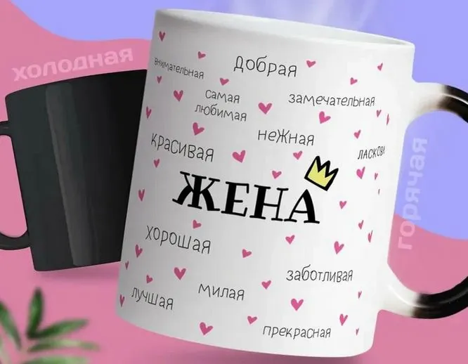 Кружка-хамелеон специально для новоиспеченной жены – подарок, который будет радовать твою подругу ежедневно.