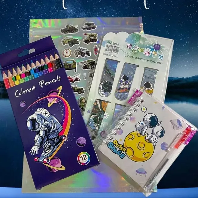 Наборы в изображением любимых героев мультфильмов, динозавтрами, машинами, космонавтами сделают учебу еще интереснее. Хороший подарок для мальчиков-первоклассников.