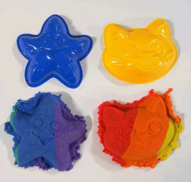 Трехлетка уже не будет предпринимать попыток попробовать такой песок на вкус, а будет строить из него замки и дворцы. Кинетический песок отличается от обычного добавлением полимера, обеспечивающего материалу пластичность, а постройкам из него – прочность. В подарок мальчикам и девочкам можно купить просто кинетический песок или набор, в который также входят формочки и/или песочница.
