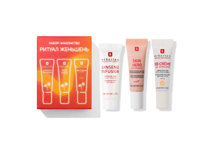 Когда хочется, чтобы в бьюти-подарке сочетались средства с разным эффектом, но бюджет ограничен, можно сделать ставку на этот набор, специально созданный для знакомства с главными бестселлерами Erborian. 3 миниатюры — восстанавливающий крем для лица, Skin Hero-крем и BB-крем для макияжа — обогащены корнем женьшеня, который вмиг устраняет признаки усталости, повышает микроциркуляцию кожи и помогает добиться ровного тона без видимых несовершенств.