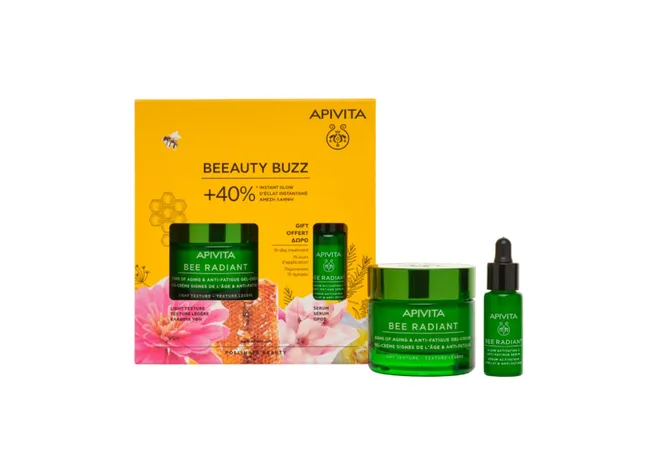 Весной так хочется легкости и сияния! Набор для ухода за лицом Beeauty Buzz прекрасно сочетается с этим желанием. Увлажняющий гель-крем и сыворотка-активатор сияния обогащены эфирными маслами и цветочными компонентами, а также содержат запатентованный экстракт прополиса — для эффективной защиты кожи от негативных факторов среды, снятия усталости и предупреждения признаков преждевременного старения.