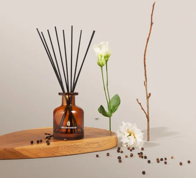 Элегантный диффузор для дома — подарок, который не может не порадовать. Он приносит в помещение гармонию и уют, причем как минимум на 3 месяца — такой срок использования диффузора гарантируют в парфюмерном Доме «Овсянников». Конкретно в этом интерьерном аромате красиво переплетаются аккорды жгучего черного перца, сладкой амбры и нежное цитрусовое звучание нероли. Такое сочетание подойдет и для спальни, и для гостиной комнаты, и даже для рабочей зоны: если, к примеру, презент выбирается для начальницы или коллеги.